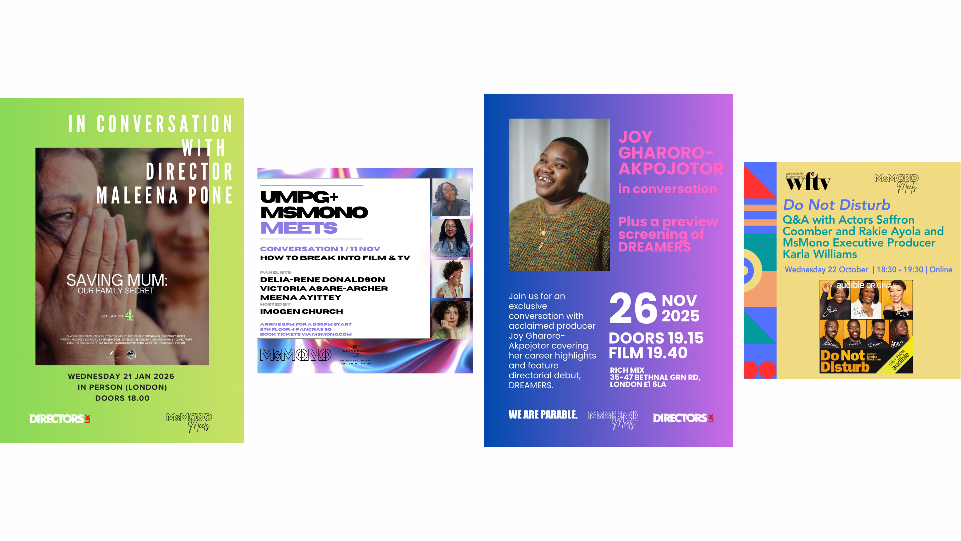 MsMono Meets connects forward-thinking organisations with a community of global-majority creatives at the heart of the industry. Our partnerships provide a platform to support authentic storytelling while gaining visibility among talent across all levels of the industry.